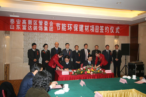 12月26日,山東富達(dá)裝飾集團(tuán)舉行簽約儀式,總投資12.46億元的節(jié)能環(huán)保建材項目落戶泰安高新區(qū)。