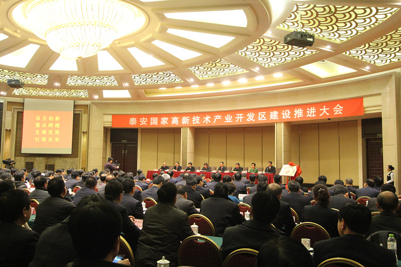 12月28日,泰安國家高新技術產業開發區建設推進大會舉行。科技部黨組成員、副部長曹健林,省委常委、常務副省長孫偉出席會議并為泰安國家高新區揭牌,科技部高新司副司長胡世輝,科技部火炬中心副主任楊躍承,省政府副秘書長張德寬,省科技廳廳長翟魯寧,市委書記、市人大常委會主任李洪峰,市委副書記、市長王云鵬等出席會議并表示祝賀。